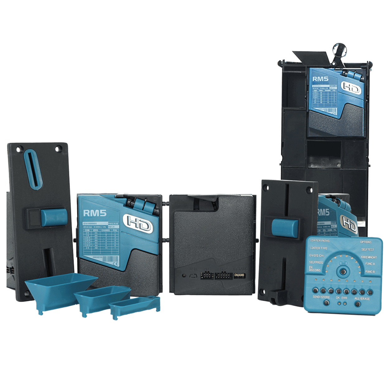The RM5 HD sets a new benchmark in coin validation, delivering exceptional speed, precision, and durability. With five advanced sensors and ten recognition parameters, it can detect and validate coins at rates of up to six per second. Its high discrimination system evaluates key factors such as frequency, dimensions, and phase, while the combination of inductive, optical, and magnetic sensors ensures highly accurate recognition. Designed for universal compatibility, the RM5 HD works seamlessly with all major coin sorters on the market. It also includes robust anti-fraud protection, featuring an electronic anti-fishing device, coin-movement direction detection, three mechanical traps, and a wire-cutting blade for maximum security. An integrated LED status indicator provides clear, immediate feedback during operation.